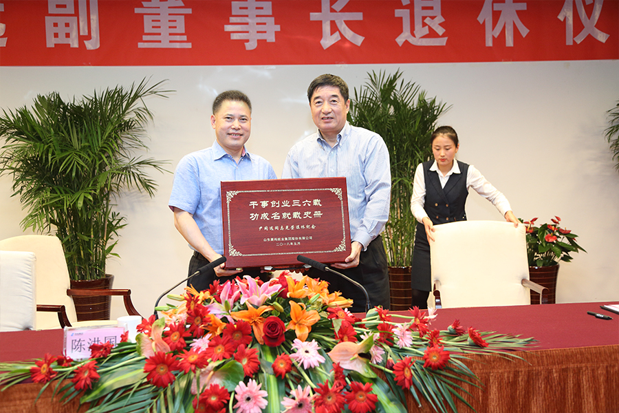 陳洪國(guó)董事長(zhǎng)代表公司向尹同遠(yuǎn)贈(zèng)送了一份精心制作的紀(jì)念品,在紀(jì)念品的上面赫然寫著“干事創(chuàng)業(yè)卅六載,功成名就載史冊(cè)”,這體現(xiàn)了公司對(duì)他多年來工作成績(jī)的充分肯定。