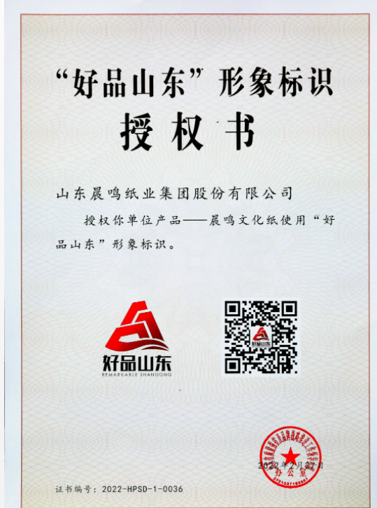 5月17日,2023“中國(guó)品牌日”(山東)活動(dòng)在日照市舉辦,晨鳴紙業(yè)作為首批入選的223家“好品山東”品牌之一,獲授“好品山東”形象標(biāo)識(shí)授權(quán)書。