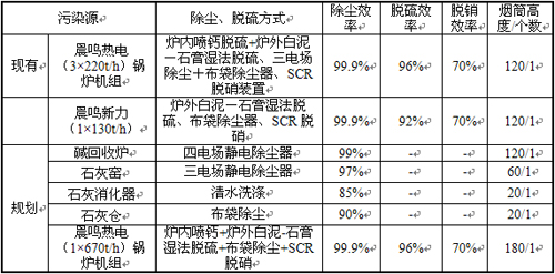 規(guī)劃建設(shè)鍋爐機組及現(xiàn)有鍋爐機組改造后煙氣中污染物SO2、煙塵、NOx排放濃度均能滿足《火電廠大氣污染物排放標準》(GB13223-2011)表2中大氣污染物特別排放限值標準(SO2 50mg/m3,煙塵20mg/m3,氮氧化物100mg/m3)。