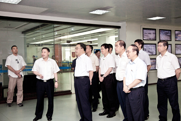 冒著高溫酷熱,胡春華一行深入到湛江晨鳴中控樓及生產車間,邊參觀邊聽取了陳洪國的相關介紹。胡春華詳細詢問了湛江晨鳴生產設備、產品、生產經營及項目建設等情況,對湛江晨鳴國際一流的設備和產品表示贊賞,對晨鳴集團在推進湛江發(fā)展中所作的努力、取得的成果給予肯定。在湛江晨鳴紙機生產線前,陳洪國董事長向胡春華書記介紹說,這條生產線建設周期雖然只有21個月,卻創(chuàng)造了全球同類工程建設的最快記錄,也是國內目前效益最好的造紙項目,胡春華連聲贊嘆,鼓勵晨鳴要繼續(xù)提高企業(yè)核心競爭力,進一步發(fā)揮好行業(yè)引領帶動作用。考察中,陳洪國還就項目后期規(guī)劃及海東新區(qū)岸線生態(tài)治理工程等進行了匯報,胡春華聽后非常高興,要求相關部門保持暢通的溝通協(xié)調機制,地方政府要做好服務,幫助企業(yè)解決項目中遇到的問題和困難,共同努力把項目規(guī)劃好、建設好,促進湛江發(fā)展。