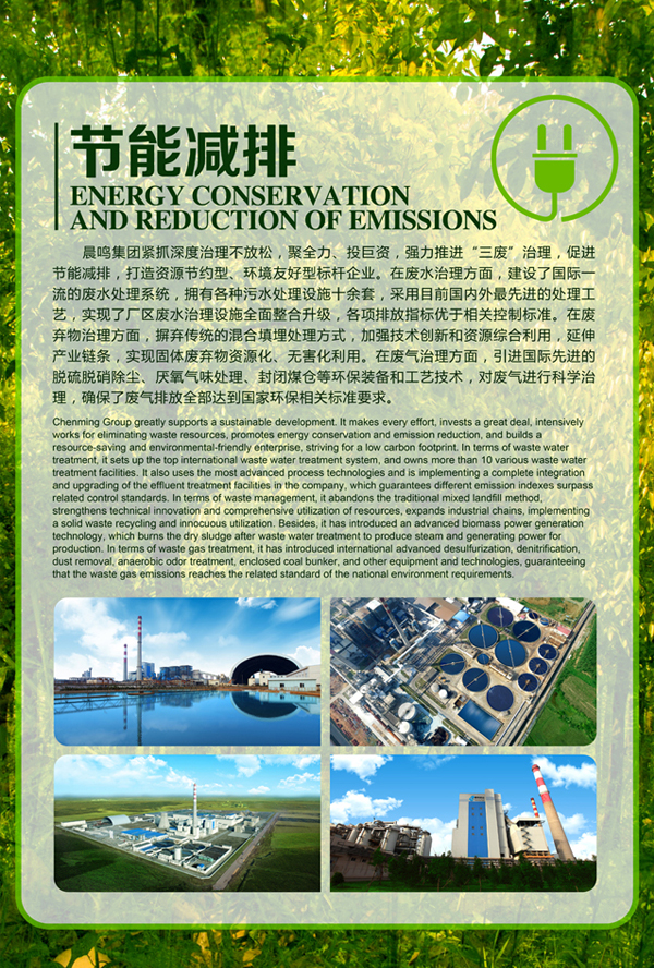 晨鳴集團堅定不移地走科技含量高、資源消耗低、環(huán)境污染少的新型工業(yè)化道路,大力實施綠色低碳戰(zhàn)略,努力做到經(jīng)濟建設(shè)與生態(tài)建設(shè)一起推進,經(jīng)濟競爭力與環(huán)境競爭力一起提升,物質(zhì)文明與生態(tài)文明一起發(fā)展,在保護環(huán)境中謀求發(fā)展,在科學(xué)發(fā)展中提高環(huán)保水平,實現(xiàn)經(jīng)濟效益與環(huán)境效益的“雙贏”。